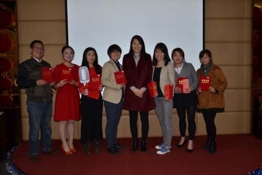 表彰2015年度在各崗位中有突出貢獻(xiàn)的員工:商務(wù)部經(jīng)理王麗茹在2015年工作突出,表現(xiàn)優(yōu)秀,獲“年度最佳優(yōu)秀員工獎”榮譽及公司年度大獎——一輛小轎車;另有張紅梅、付劍、陳紅艷、楊健、葛莉、毛勇華、劉紅招分別榮獲“優(yōu)秀員工獎”、“堅持夢想之路獎”、“最佳開拓獎”、“年度最具責(zé)任心獎”、“年度最勤奮獎”、“勞動模范獎”、“最佳新人獎”。榮譽,代表過去的努力,更是下一年度出發(fā)的起點,激發(fā)我們不斷超越和攀登,從而再上新臺階。